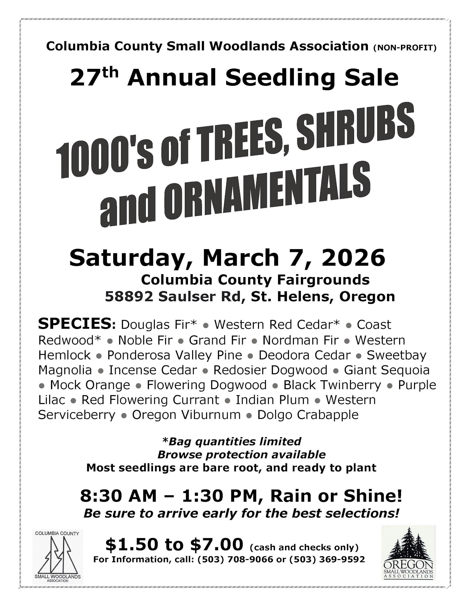 27th Annual Seedling Sale – 1000’s of Trees, Shrubs and Ornamentals