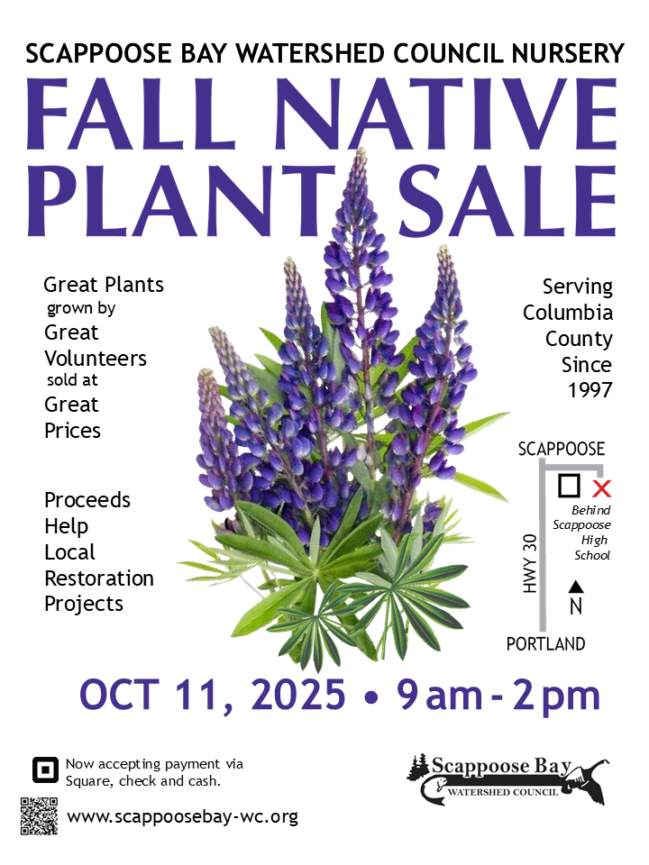 The sale goes from 9:00 a.m. – 2:00 p.m. at our nursery, located behind Scappoose High School. Address: 33700 SE High School Way, Scappoose, OR 97056 [Directions]